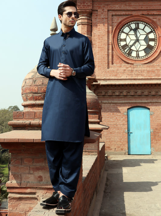 Navy Blue Blended Kameez Shalwar - ALWA-KS-245