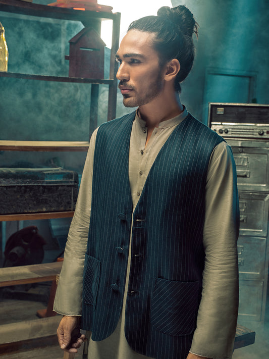 Blue Linen Cotton Waistcoat - ALCR-WC-001