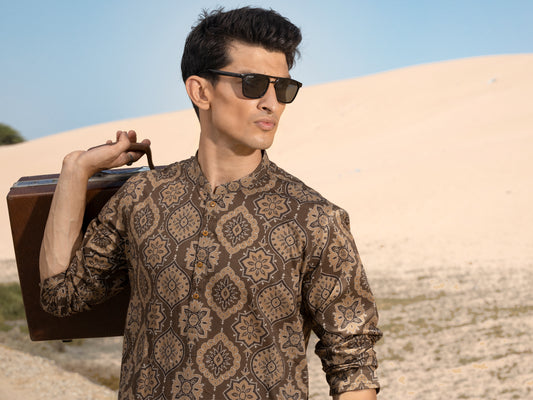 Light Blue Denim Kurta Trousers - AL-KT-3261