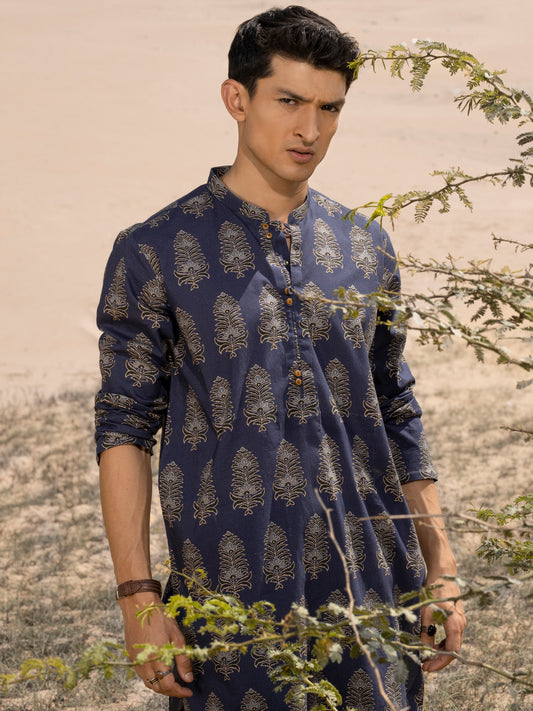 Midnight Blue Blended Kameez Shalwar - AL-KS-2842