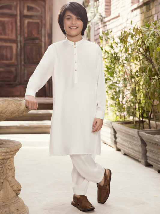 White Blended Boy Kameez Shalwar - ALT-KS-030A