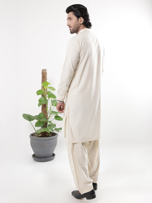 Cream Blended Kameez Shalwar - AL-KS-3224A
