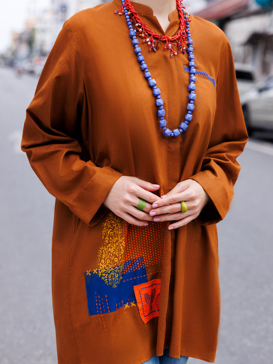Brown Cotton Lawn Tunic - AL-LK-956