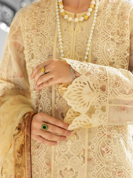 Off White Poly-Organza 3Pc Stitched - ALP-3PS-1786