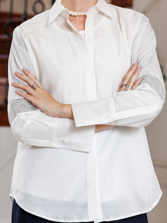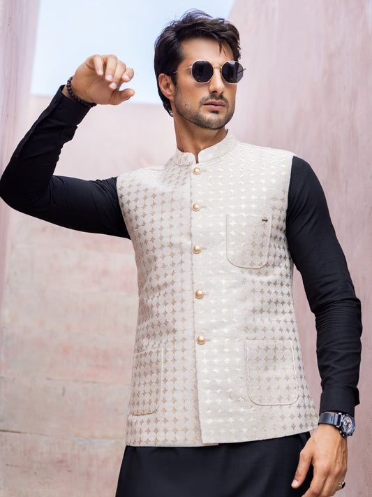 Off White Blended Kameez Shalwar - AL-KS-2374