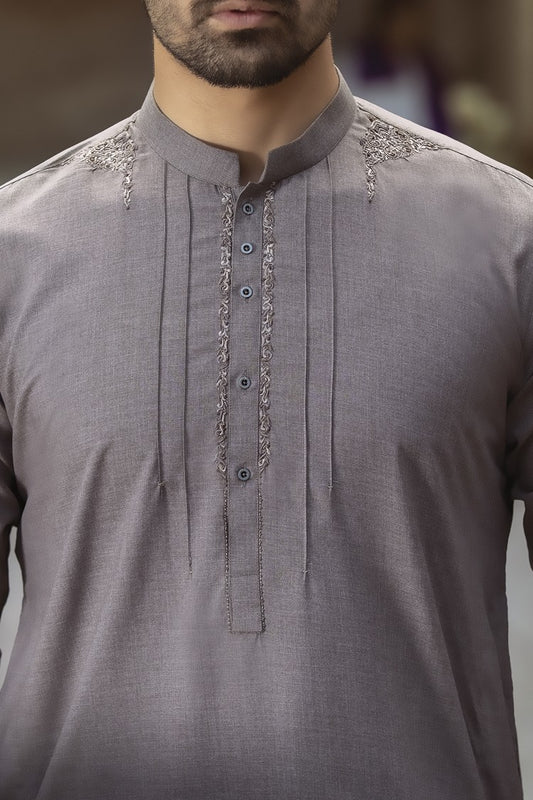 Light Grey Blended Kameez Shalwar - AL-KS-2406