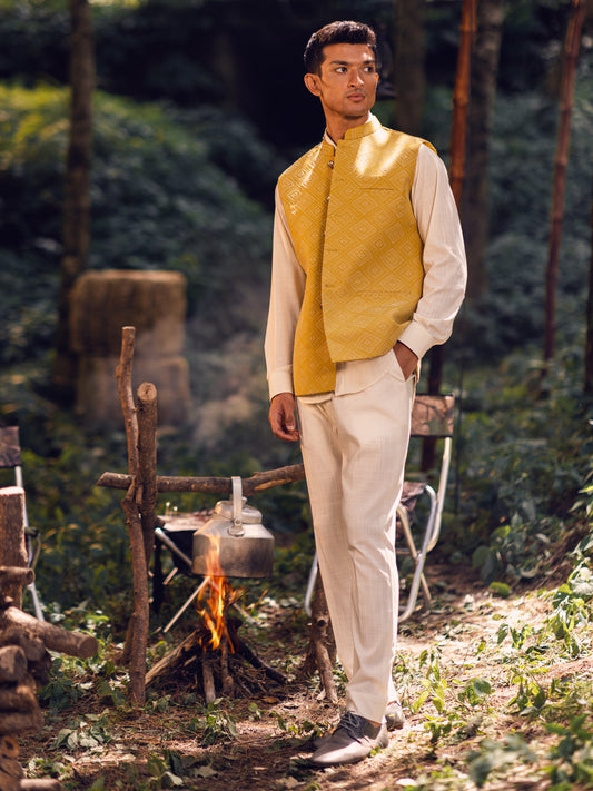 Cream Blended Kameez Shalwar - AL-KS-3247E