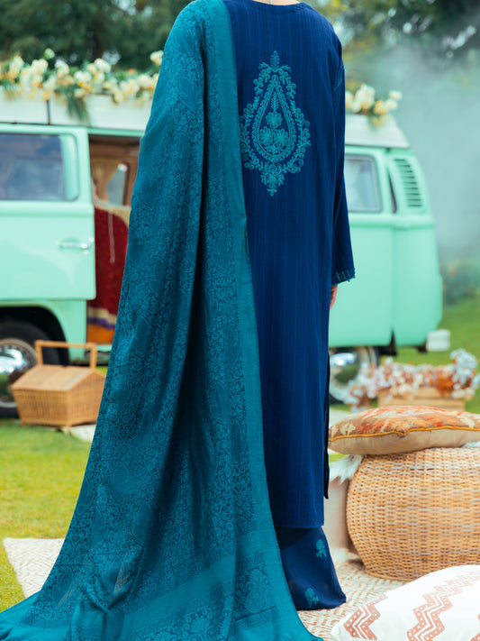 Blue Yarn Dyed 3Pc Unstitched - ALP-3PS-2155