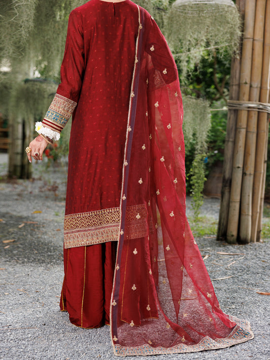 Maroon Khaddi Net Formal 3Pc Stitched - AL-3PS-LS-524