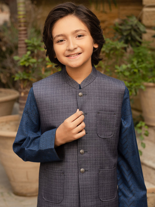 Blue Blended Kameez Shalwar - AL-KS-3243G