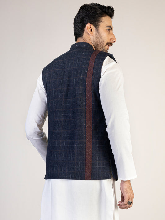 Navy Blue Blended Unstitched Fabric - AL-UN-JHR-6195