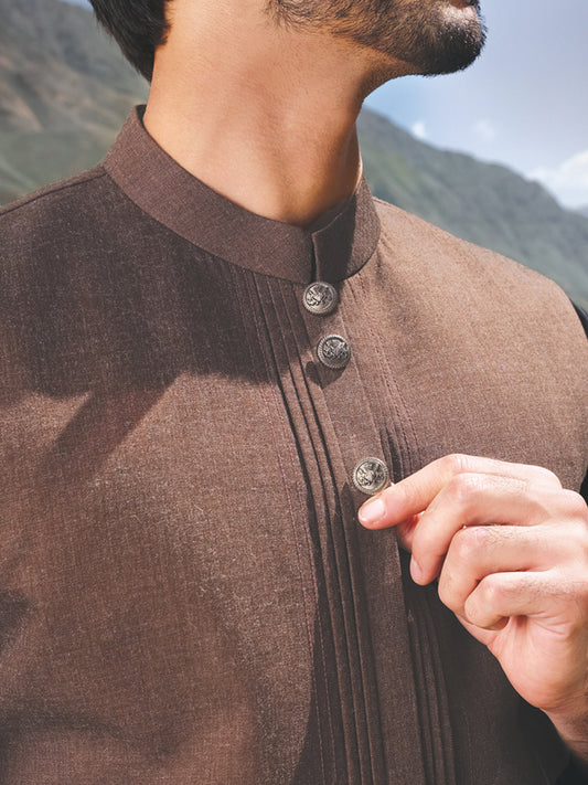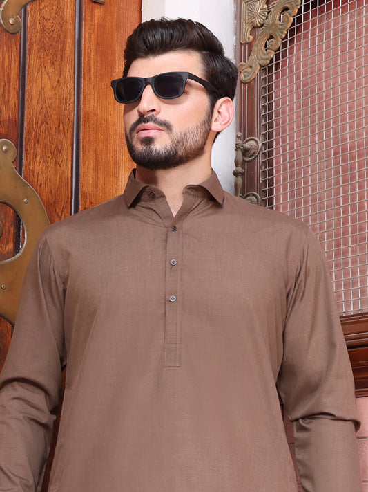 Brown Blended Kameez Shalwar - ALWA-KS-205