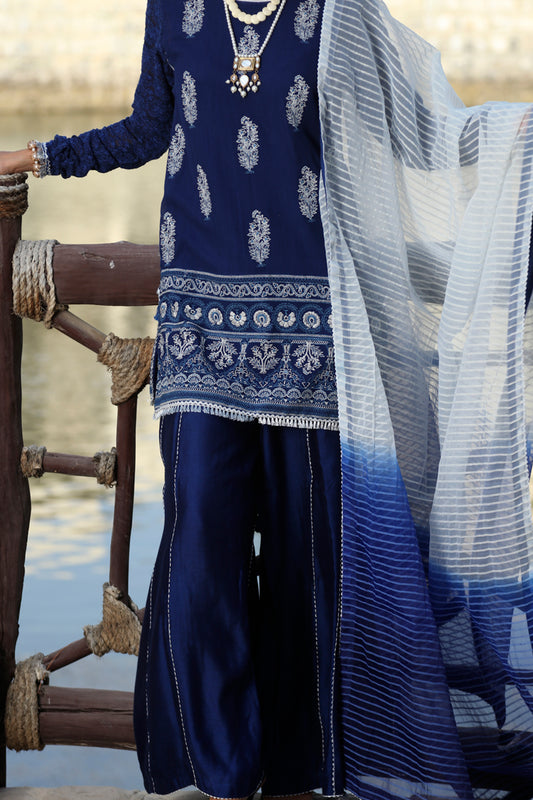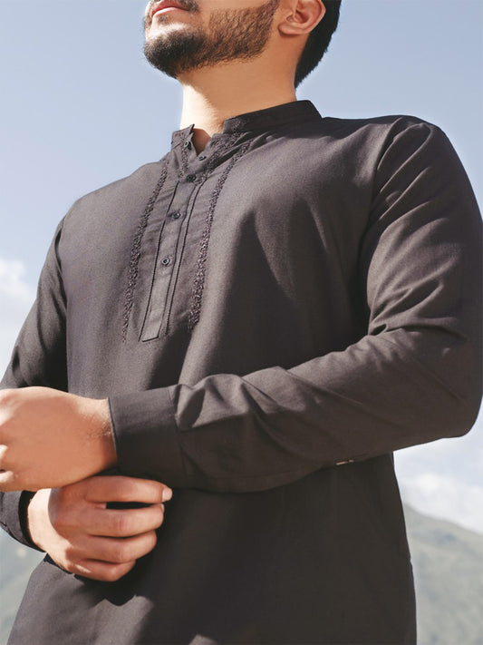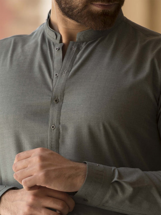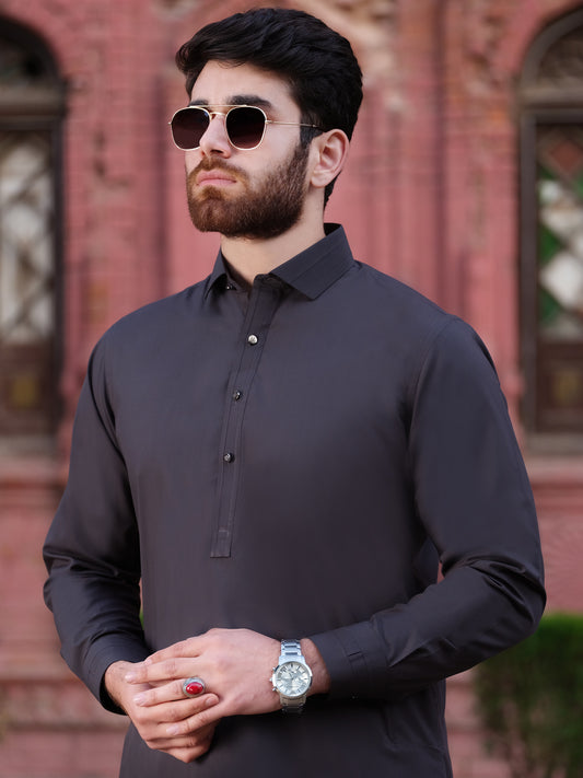 Charcoal Grey Blended Kameez Shalwar - ALWA-KS-184