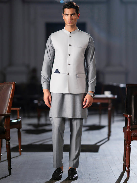 Ash Grey Cotton Kameez Shalwar - ALWA-KS-546
