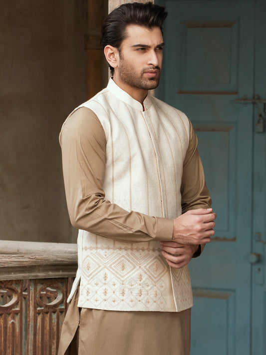 Light Brown Blended Kameez Shalwar - ALWA-KS-511A
