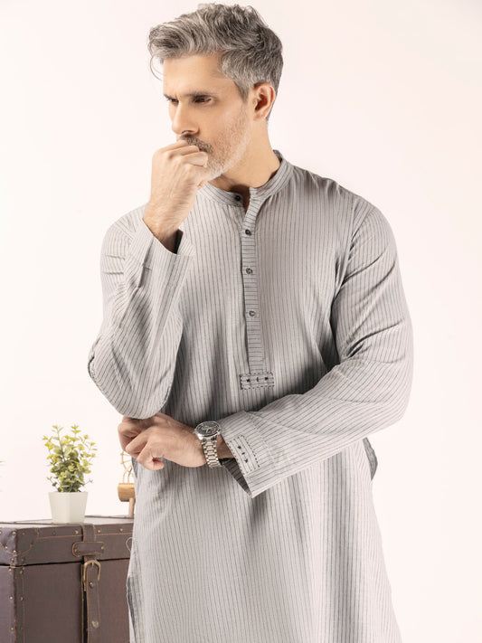Light Grey Blended Kameez Shalwar - AL-KS-3210