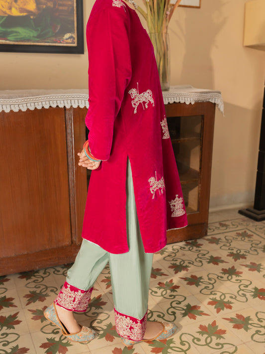 Magenta Velvet 2 Piece Stitched - ALT-LS-LKS-1139