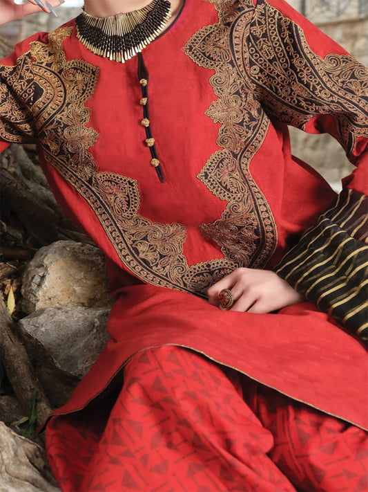 Maroon Velvet Formal 3Pc Stitched - AL-3PS-LS-493