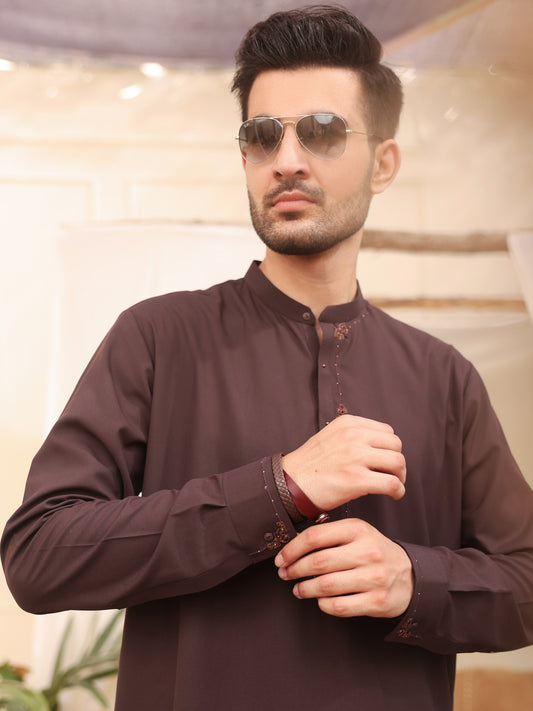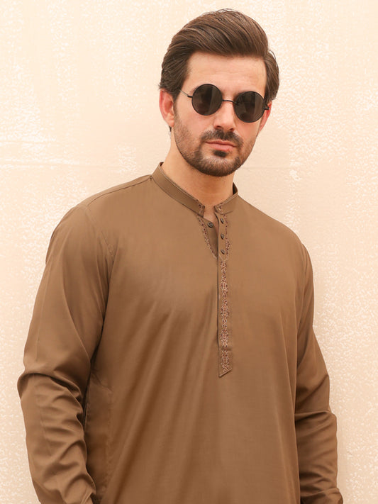 Light Brown Blended Kameez Shalwar - AL-KS-2536