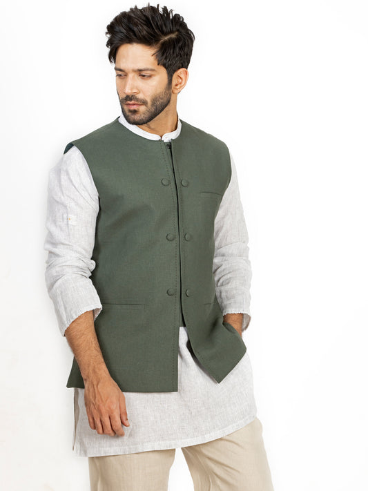 Mehndi Green Blended Unstitched Fabric - Johar-854C