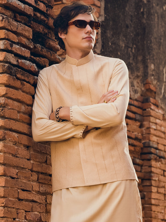 Cream Blended Kameez Shalwar - ALWA-KS-331