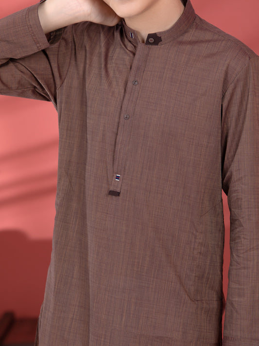 Brown Dobby Silk Salah Robe - AL-LK-PD-1070