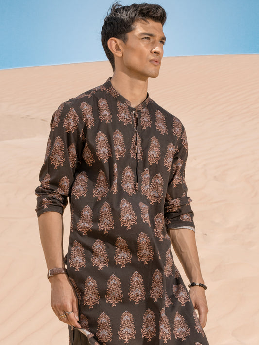 Dark Brown Cotton Short Kurta - ALCR-K-034