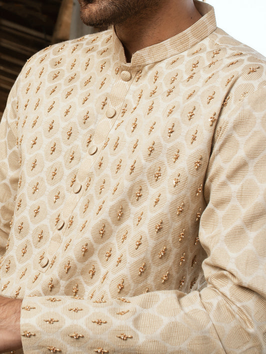 Beige Blended Kameez Shalwar - AL-KS-3247C
