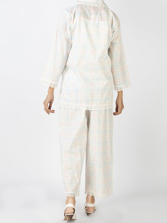 White Cotton 2 Piece Stitched Nightwear - ALT-LKS-NW-1003