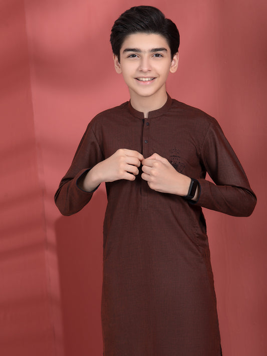 Dark Brown Blended Boy Kurta - ALT-K-013A