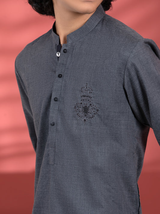 Dark Grey Blended Boy Kurta - ALT-K-013C