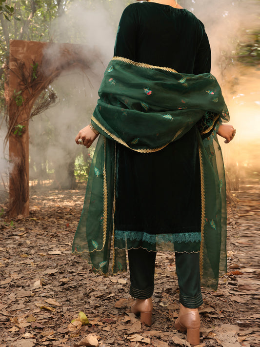 Dark Green Velvet 3Pc Formal Stitched - AL-3PS-LS-389