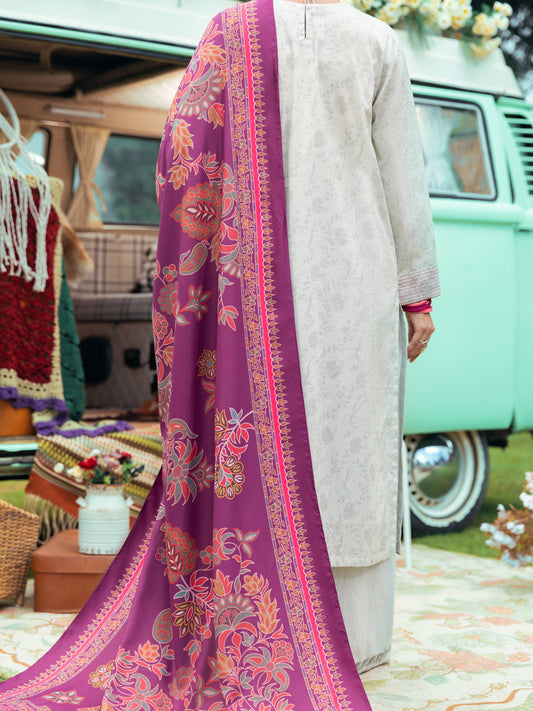 Off White Lawn 3Pc Stitched - ALGR-3PS-LS-018