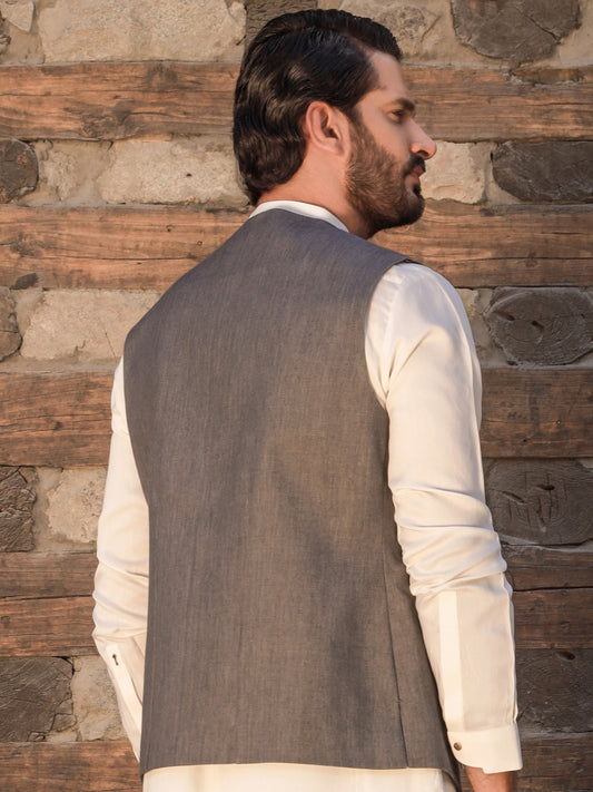 Ash Grey Blended Kameez Shalwar - AL-KS-3233