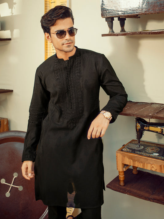 Black Cotton Unstitched Fabric - Maharaja-836-1K