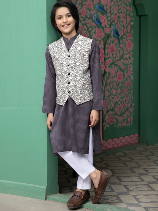 Black & White Blended Boy Waistcoat - ALT-WC-004