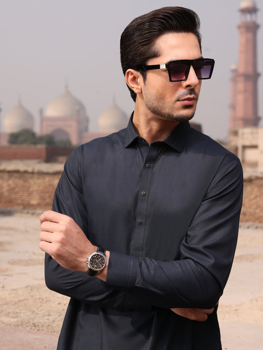 Dark Blue Blended Kameez Shalwar - ALWA-KS-240