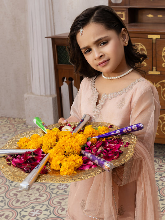 Light Pink Shimmer Net 3Pc Stitched - ALGR-3PS-LS-013