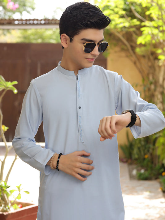 Light Blue Blended Kurta Trouser - AL-KT-3114A