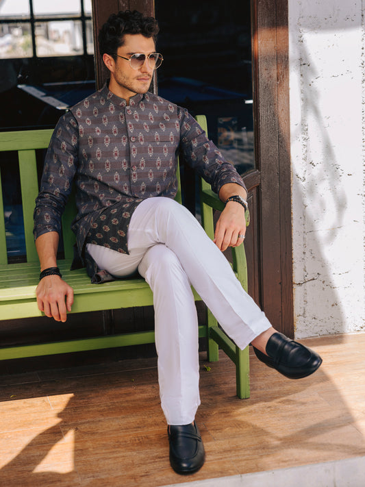 Brown Blended Kameez Shalwar - ALT-KS-073