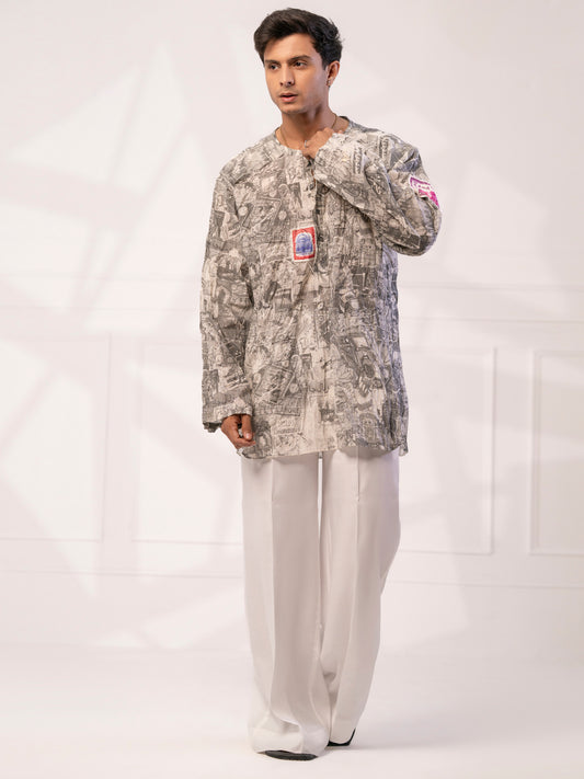 Light Grey Cotton Short Kurta - AL-SK-021B