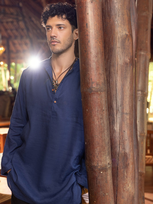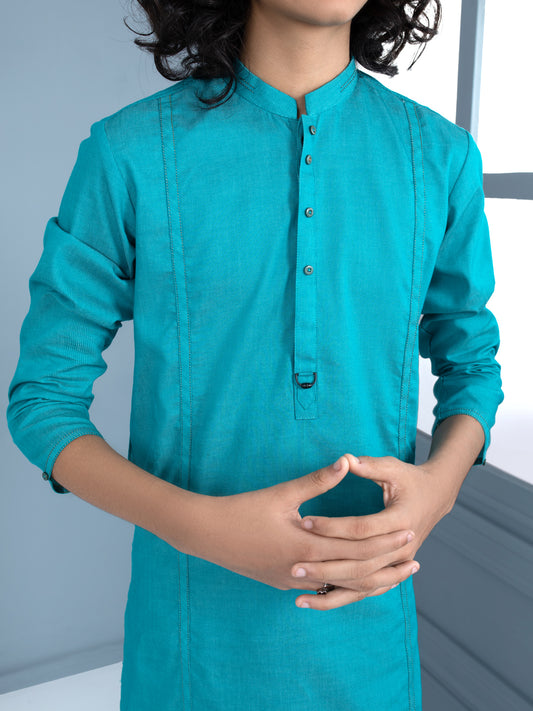 Blue Linen Short Kurta - ALCR-K-029