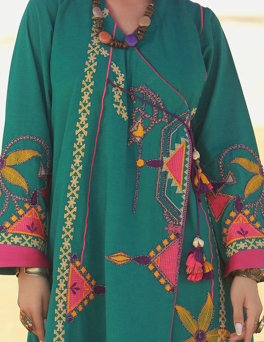 Red Khaddar + Linen 3Pc Stitched - AWP-210