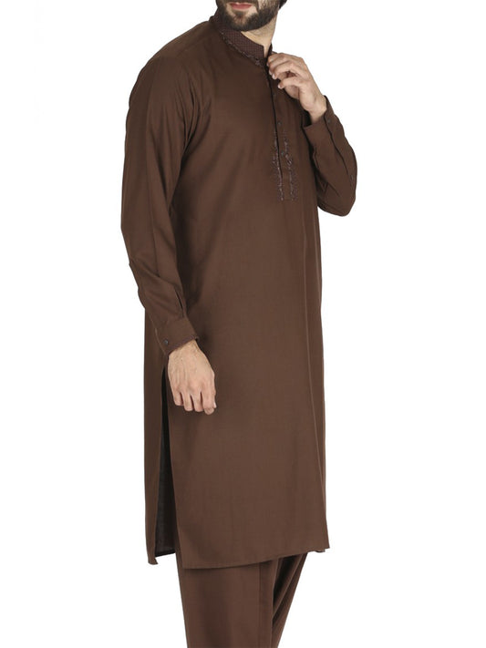 Brown Blended Kameez Shalwar - AL-KS-2416