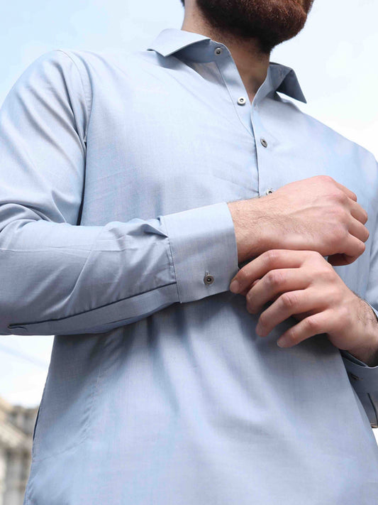 Light Grey Blended Kameez Shalwar - AL-KS-2366