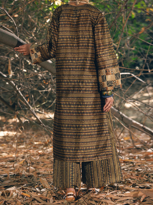Mustard Cotton Khaddi Net 3Pc Stitched - ALP-3PS-2028