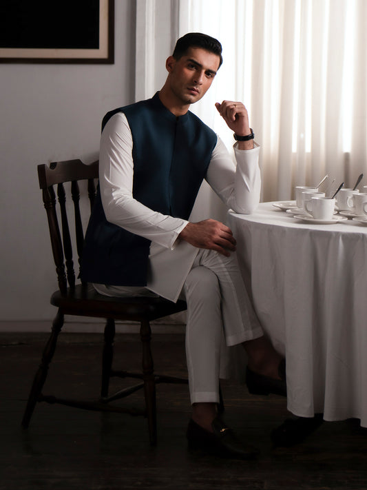 Teal Green Blended Waistcoat - AL-WC-564