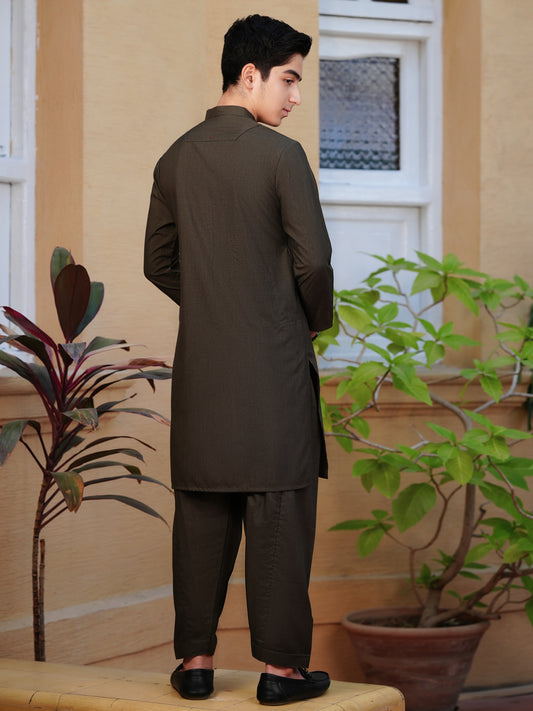 Olive Green Blended Kameez Shalwar - ALT-KS-078