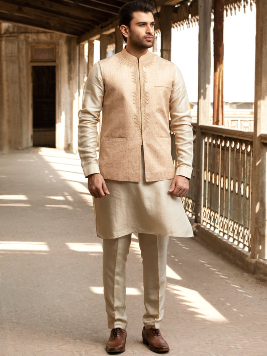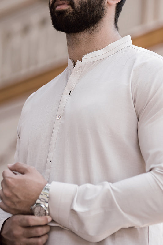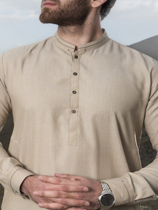 Sand Colored Blended Kameez Shalwar - AL-KS-2408