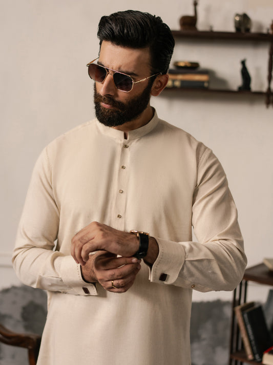 Cream Blended Kameez Shalwar - AL-KS-3247B